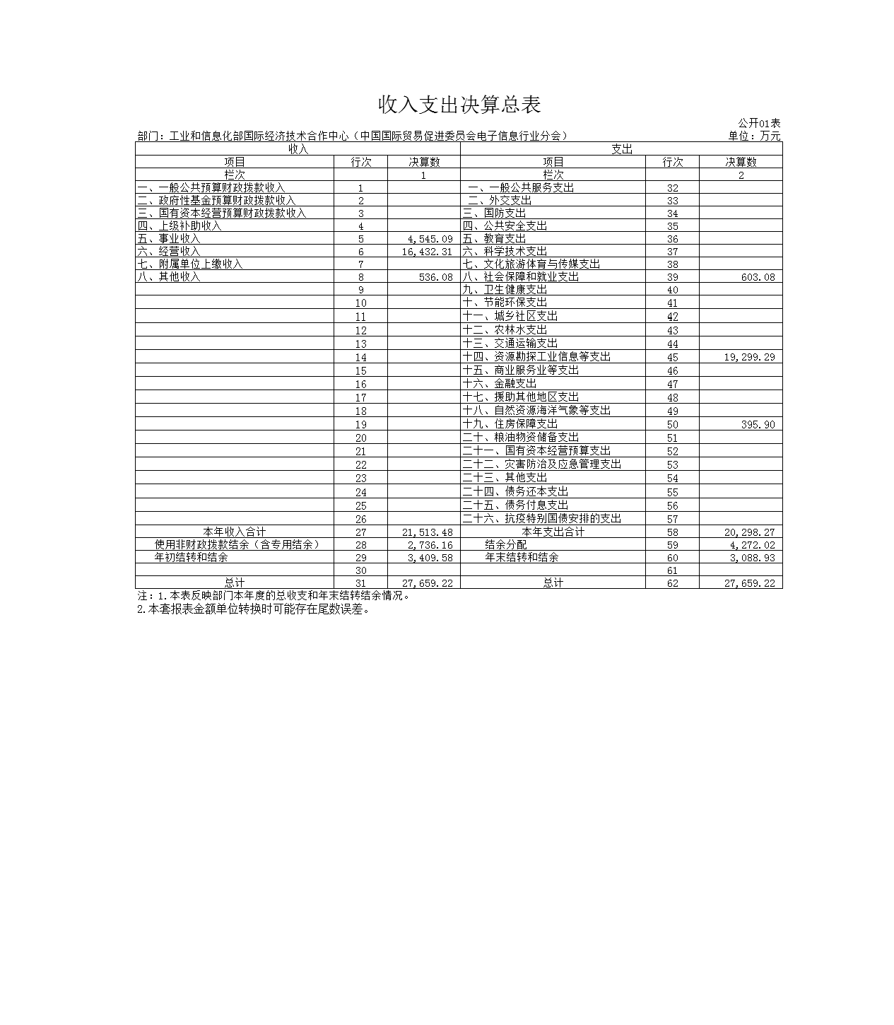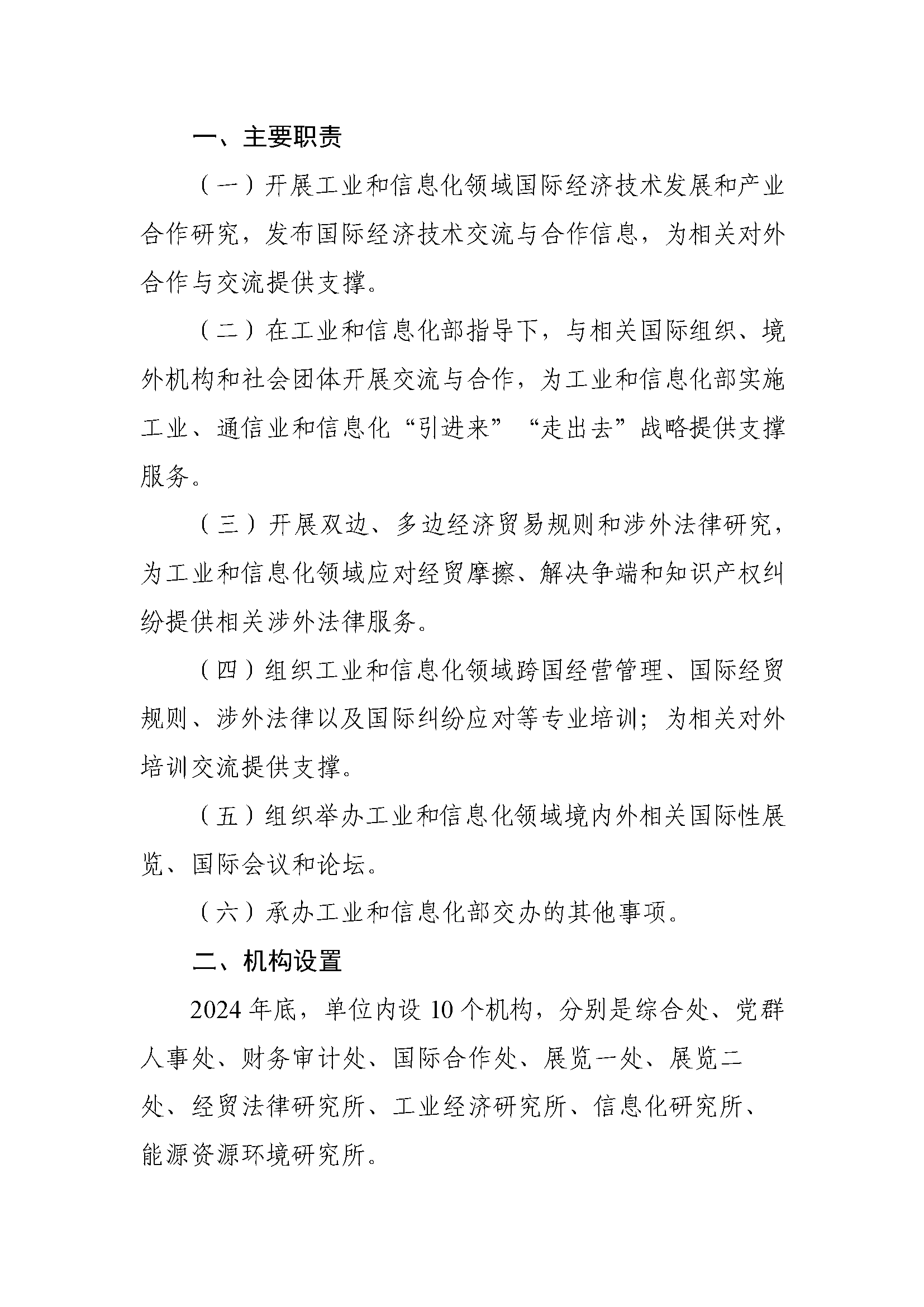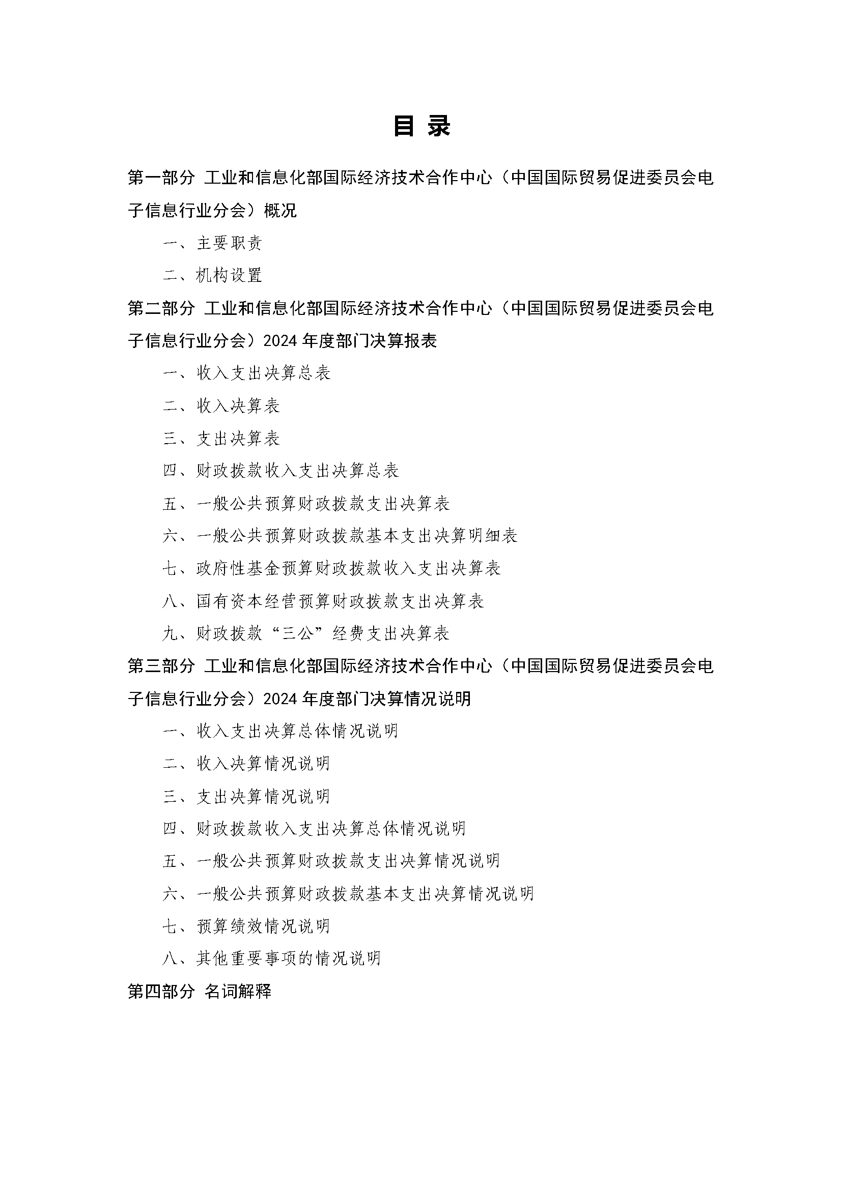 工业和信息化部国际经济技术合作中心(中国国际贸易促进委员会电子信息行业分会)2024年度部门决算